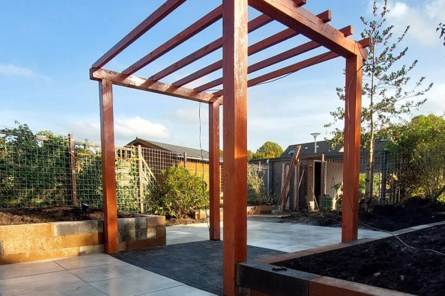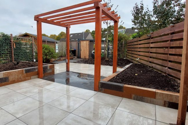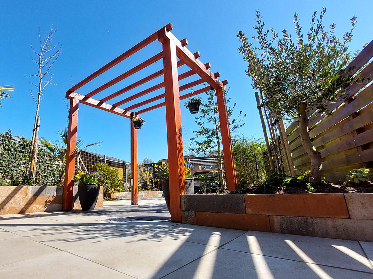 Harmonie met de omgeving: de materiaalkeuze en kleuren worden zorgvuldig afgestemd op uw woning en de rest van de tuin.
