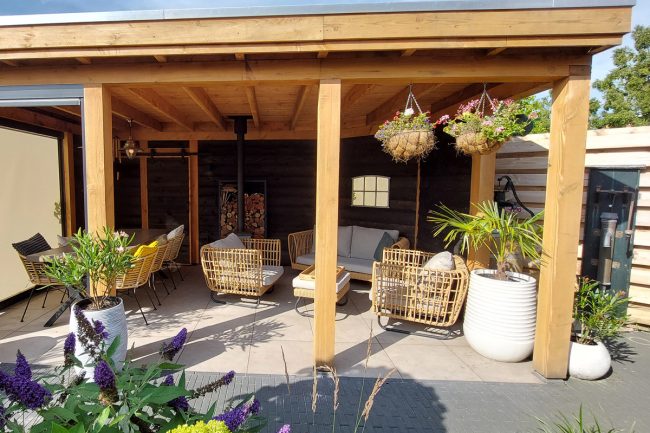 Extra leefruimte met een tuinhuis, overkapping of tuinkamer.